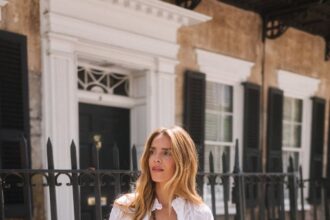 Outfit Details:LilyEve Jacket (one of a kind, more styles here), Staud Dress, Prada Flats (less…