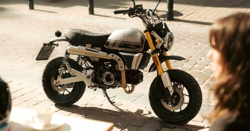 Bluroc is a Belgium-based, small-capacity bikemaker that’s been around since 2013and now has a presence in seven countries throughout Europe. Its lineup is pretty interesting. You’ve got 250cc cruiser and scramblers to a 125cc tracker, and now a 50cc Honda Monkey styled mini moto.