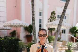 Valentino Jacket (more similar here), Flore Flore Shirt, Ralph Lauren Pants, Marguax Sandals, Bottega Veneta Sunglasses, Chanel Bag, Irene…