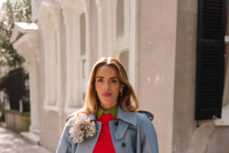 Altuzarra Coat (sold out, similar here), Cos Sweater, Tory Burch Shirt, Donni Pants (also love these), Gucci Pumps, Chanel Brooch & Bag…