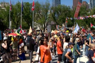 Hundreds of protesters rally in downtown Calgary ahead of G7 summit