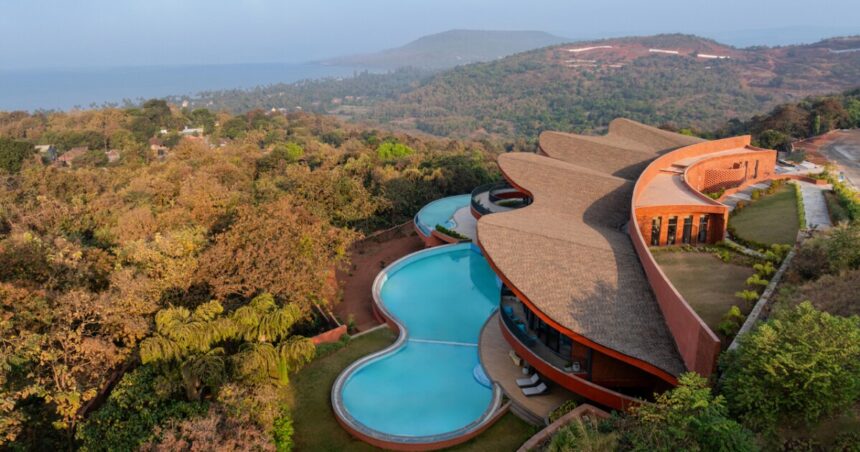 A leisure and wellness complex by Indian architectural firm Sanjay Puri Architects has been completed in Anjarle, Maharashtra. Dubbed Crest Nine, the project has turned a steep hillside plot into a luxury health destination. Set on a sharply descending coastal site, the gated development works with the land’s existing topography, rather than erasing it.